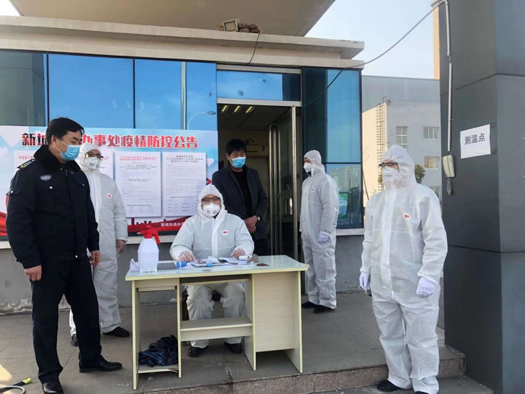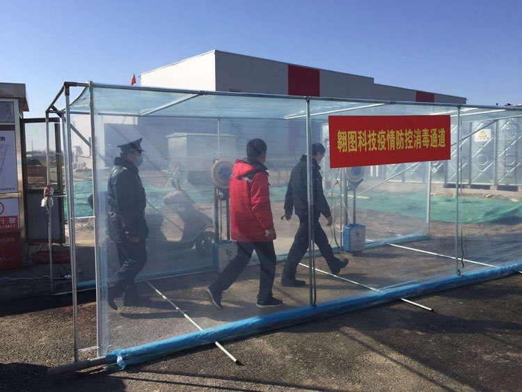 2、翱翔科技有限公司防疫嚴密,利用公司產品設立防疫消毒通道,保安員負責測量人員體溫、登記,監(jiān)督人員在防疫通道消毒后進入廠區(qū)。
