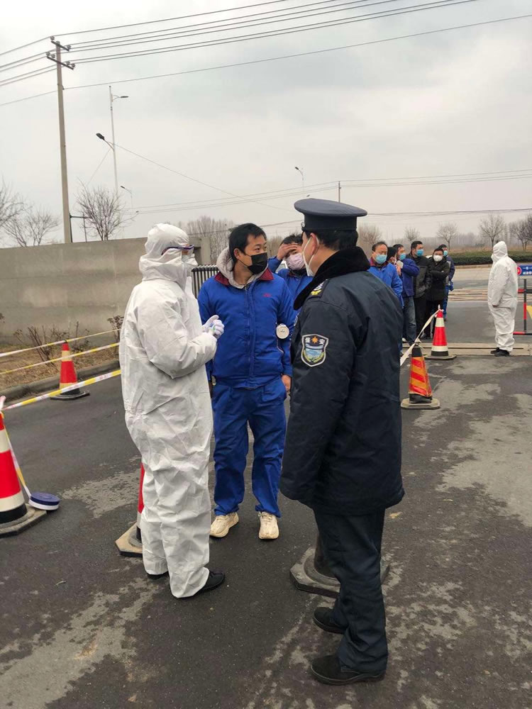 3、奇瑞汽車公司作為開封市重點企業(yè),春節(jié)期間改裝設備人員需要入場區(qū)施工,疫情防控任務繁重,保安員承擔了進出人員每日體溫和信息登記的任務,保安班長任海泉感到自身的責任和壓力重大,時刻以身作則,疏導隊員恐慌心理和加強客戶安全防護工作。2月5日,已經下班的任海泉看到天氣突變,下起了大雪,立刻想到了在奇瑞一號門值班的隊友,冒著大雪趕往崗點,大雪中電動車摔倒了好多次,趕到時手腕扭傷,腿上摔青了好多塊淤血,顧不上處理傷情的任班長立刻投入到工作中,帶領隊員在廠區(qū)巡邏,排查安全隱患,他帶領的班組得到了奇瑞安環(huán)科的高度贊揚。