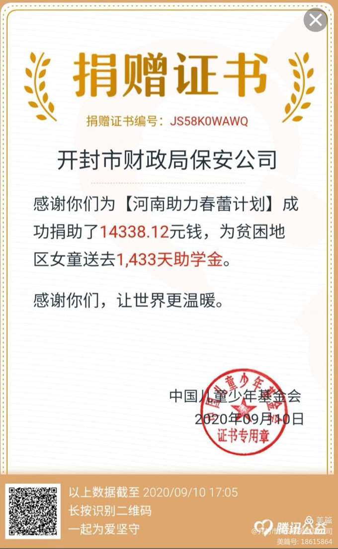 為動(dòng)員公司全體人員支持貧困女童繼續(xù)學(xué)業(yè)、追逐夢(mèng)想,更好地服務(wù)脫貧攻堅(jiān)工作大局,公司根據(jù)市委組織部、市婦聯(lián)等7家單位聯(lián)合下文通知精神,黨支部組織開(kāi)展2020年“99公益日”“春蕾計(jì)劃”網(wǎng)絡(luò)募捐籌款活動(dòng)。