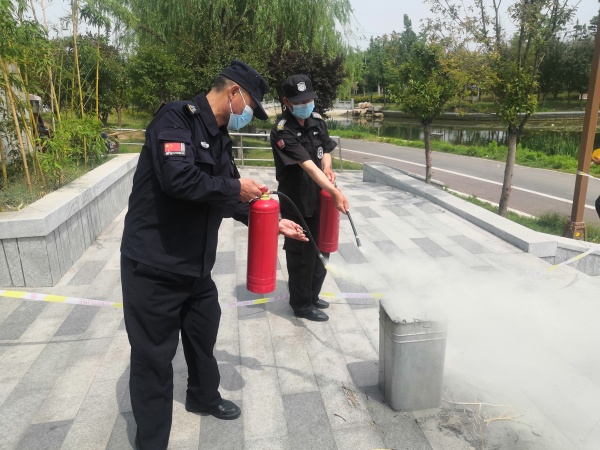 針對(duì)服務(wù)單位實(shí)際情況,開展保安員及服務(wù)單位員工夏季用火與用電等防火知識(shí)的普及,并就滅火器、室內(nèi)消火栓等器材的使用方法進(jìn)行了現(xiàn)場(chǎng)演練及培訓(xùn)。